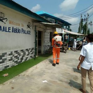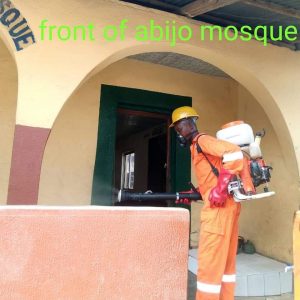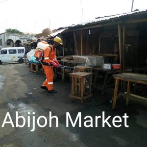 Decontamination/ disinfection carried out in Abijo Town on 23rd April 2020. Areas covered include the following;